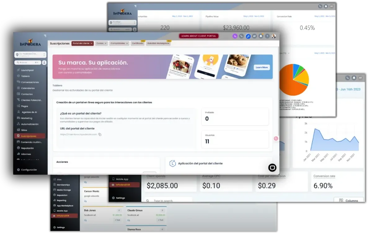 A diferencia de otras plataformas que te cobran por curso adicional, InPodera.ai te permite crear todos los programas educativos que necesites para escalar tu negocio.